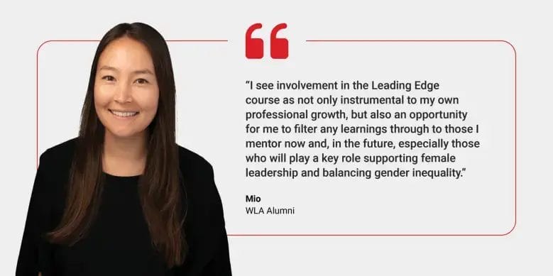 Mio Dart’s journey through the Leading Edge Program highlights the profound impact that leadership development can have, not only on career progression but also on personal growth. Through the program, she gained essential skills in people management, communication, and self-awareness, allowing her to navigate workplace challenges with greater confidence and empathy. The support of her mentors, peer coaching, and the insights shared by other women in the program deepened her commitment to mentoring and uplifting others, especially women in her industry.